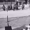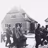 Tyske soldater på Brovejen ved sygehuset, med cykler eller gående med trækvogn. Maj 1945.
