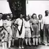 Medlemmer fra Kvindeligt arbejderforbund ved Fagenes Fest. I baggrunden fane nr.2.