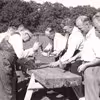 Fagenes fest på Stadion. Tømrerne i konkurrence med gennem savning af brædder.