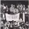Fodboldkamp på Stadion. Nogle tilskuere holder et banner med påskriften MG&BK. Der var ca. 4000 til kampen.