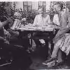 Dåbsfoto af Grethe og Alfred Frederiksen som gudforældre for Anne Marie, datter af Karen Margrethe og Kaj Chr. Ove Hansen siddende yderst til højre.
