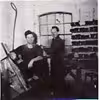 De to kærnemagere stod for at lave kærner til hulrum i støbegodset. I baggrunden et lager af tidligere fremstillede kærner. De to var medlem af fabriksarbejdernes Fagforening