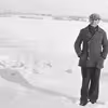 Toldopsynsmand Henrik Jensen ved Strib havn, isvinter 1940