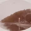 Litografisk tryk, forestillende udsigten fra Kongebroskoven. signatur: Louis Jensen 1883