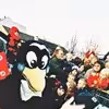 Kvickly, Middelfart. Foran forretningen er et fodboldhold, sponsoreret af Kvickly. De voksne er træner samt bestyrelsesformand i brugsforeningen, Preben Kristiansen
