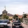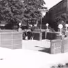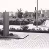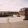 Middelfart. P-pladsen ved Kvickly set mod vest med Brandstationens slangetårn i baggrunden. Den lå dengang på Jernbanegade.