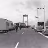 Lillebæltsbroen 18/10 1970. Da det var tilladt at gå på broen. Mennesker og parkerede biler på broen.