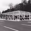 Træpavillon ved tilkørselsvej til Lillebæltsbroen.