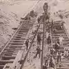 Jordarbejdere i gang med bro- eller jernbanebygning antagelig i forb. med bygningen af den første Lillebæltsbro.