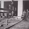 Lillebæltsbroen, den første. Arbejde med sandblæsning på Krupps plads.