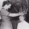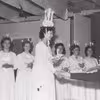 Grethe Byskov Ovesen kroner Luciabrud, antagelig i Røjle Forsamlingshus efter krigen.