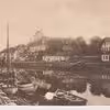 Fra Middelfart havn med Toldbod vinhus og Fiskehandler Herman Hansens forretning.