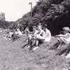 Skoleidrætsstævne på Middelfart Stadion. Hvilepause bag klubhuset.