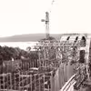 Landfag på Jyllandssiden under opførelse af den første Lillebæltsbro..