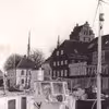 Fra Middelfart gl. Havn, med tremastere og småbåde, i baggrunden Hotel Melfar og Kirketårnet.