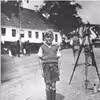 Dreng poserer ved landmålerens instrumenter på Snoghøj.