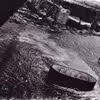 Lillebæltsbroen, den første. Sænkekasse 2's stabelafløbning med DSB-færge og småbåde på bæltet.