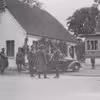 Tyske soldater strigler heste ved avlsbygningen på Hindsgavl