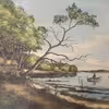 Parti fra Vintersbølle strand. Frk. Magius kigger på naturen
