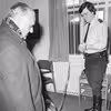 Erling Jensen, forh.minister på besøg på politistationen, Algade 89