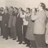 Rejsegilde på Danapak. F.v. ingeniør A. Ebbesen, bygmester Gunnar Hansen og direktør Egon