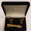 Æske med manchetknapper og slipsenål med Slagelse byvåben