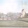 Maleri af Lynge kirke med landsbyen ca. 1880