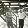 Billede af Poul W. Jensen og Hans Jørgen Hansen på pladsen foran smedefirma Poul W. Jensen Eftf. Aps, Holbækvej 112, Sorø.