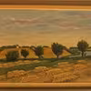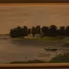 Maleri på hård masonite, af ejendommen Fjordholm og dæmningen til Ronæsskov
