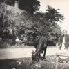 Signe Andersen (Væverens) med koen, Kauslunde, ca. 1920.