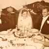 Snedker Niels Emil Sørensen og hans kone Erna, født Olsen, ved et festbord.