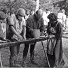 Udstilling af kobbertøj på Holbæk Museum. Stående fra venstre: Blikkenslager Preben Frederiksen. Siddende med ryggen til: Museumsinspektør J.L. Østergaard Christensen.