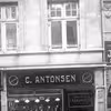 Carl Antonsen i døren til sin første forretning i Vestergade.