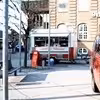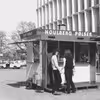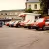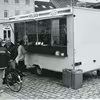 Torvet med pølsevogn og torvehandel. Ca.1977