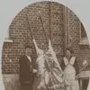 Ukendt forening opstillet til fotografering, med fanen i baggrunden