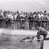 Sælerne fodres ved Fiskeri- og Søfartsmuseet, juli 1977