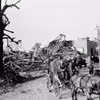 Tyske vogne passerer sønderskudte bygninger, 1945