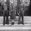 Hornslet Skole - 3 lærerkollegaer på trappen foran skolen 1956.
