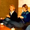 To sygeplejeelever holder pause med te og strikning i hyggehjørnet på gangen i Sankt Lukas Stiftelsens Sygeplejeskoles