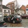 Jens Peter Larsens droske på Frederikstorv ved B.P. Benzinstation.