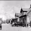 Søndergade fra fodgængerfeltet ved mejeriet Fladstrand, jernbaneoverskæringen og Alpha Diesels bygning.