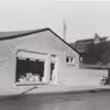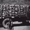 Læsset lastvogn i gården til Assensvej 2 (Middelfart Hjulfabrik). Foran bilen sidder vagthunden "Bjørn".