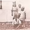 Familien Johansen , Brokbjergvej 16, Bovrup. Pigen til v. er Marie gift med Johan Paulsen, borgmester i Tønder. Til h. Marcus Christiansen og frue, Skodborg