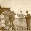 2 damer og 3 mænd synger på perronen, før morgentoget mod Aalborg ankommer, foran Vester Hassing Station, Bakkedraget 10, Vester Hassing.