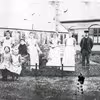 Personale i haven med pavillion foran Hals Sygehus, Rosenvænget 7, Hals.