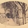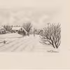 Snemotiv af Stien ved sygehuset i Stege med Havneslottet th.