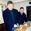 Nykøbingkredsens kandidat Hans Hækkerup mødes med røde faner ved Asnæs Station 8. 12. 1992