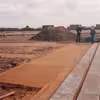 Foto af gågade i Holstebro hvor der lægges fliser på gaden. Billedet er fra juni 1973.