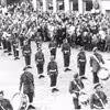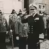 Kong Frederik 9. hilser på Schützenkorps på Kirkepladsen. 1957