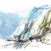 Indtryk fra Færøerne, serie af 4 tegninger af Frank Hammershøj, reproduktioner.